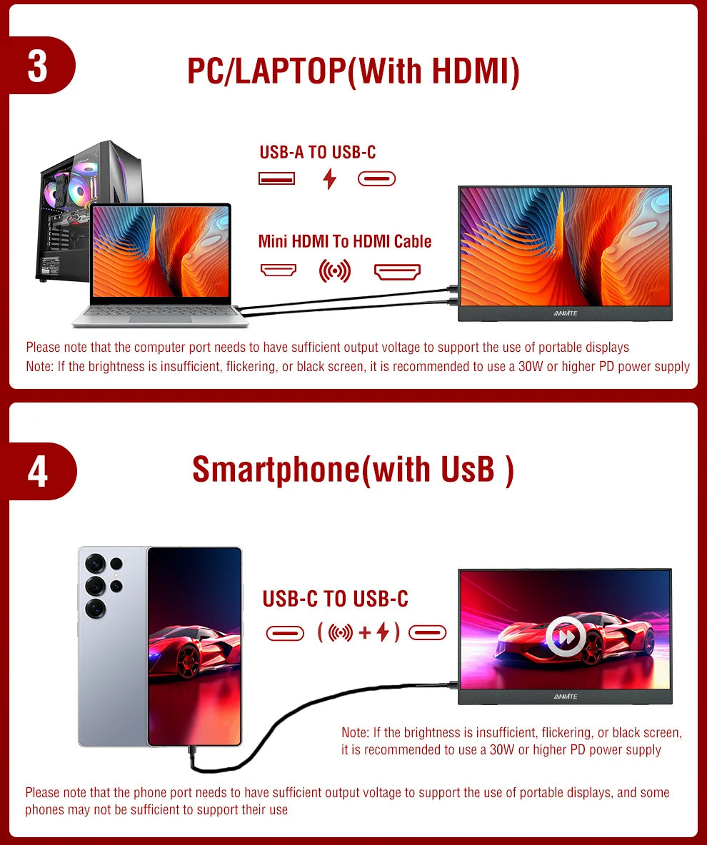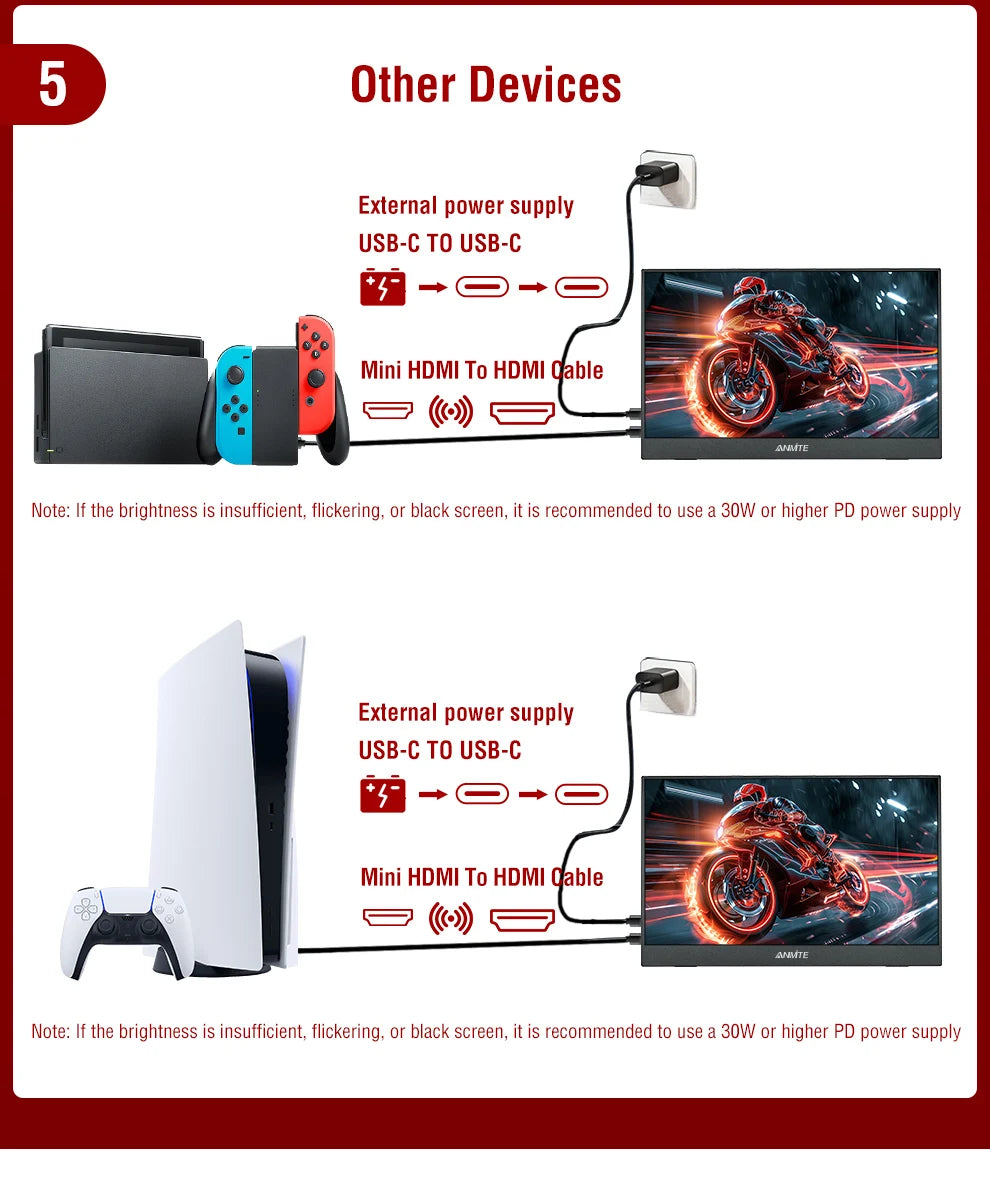 Supports HDMI and USB-C input for flexible connections. Easily link to consoles, PCs, laptops, or other compatible devices.