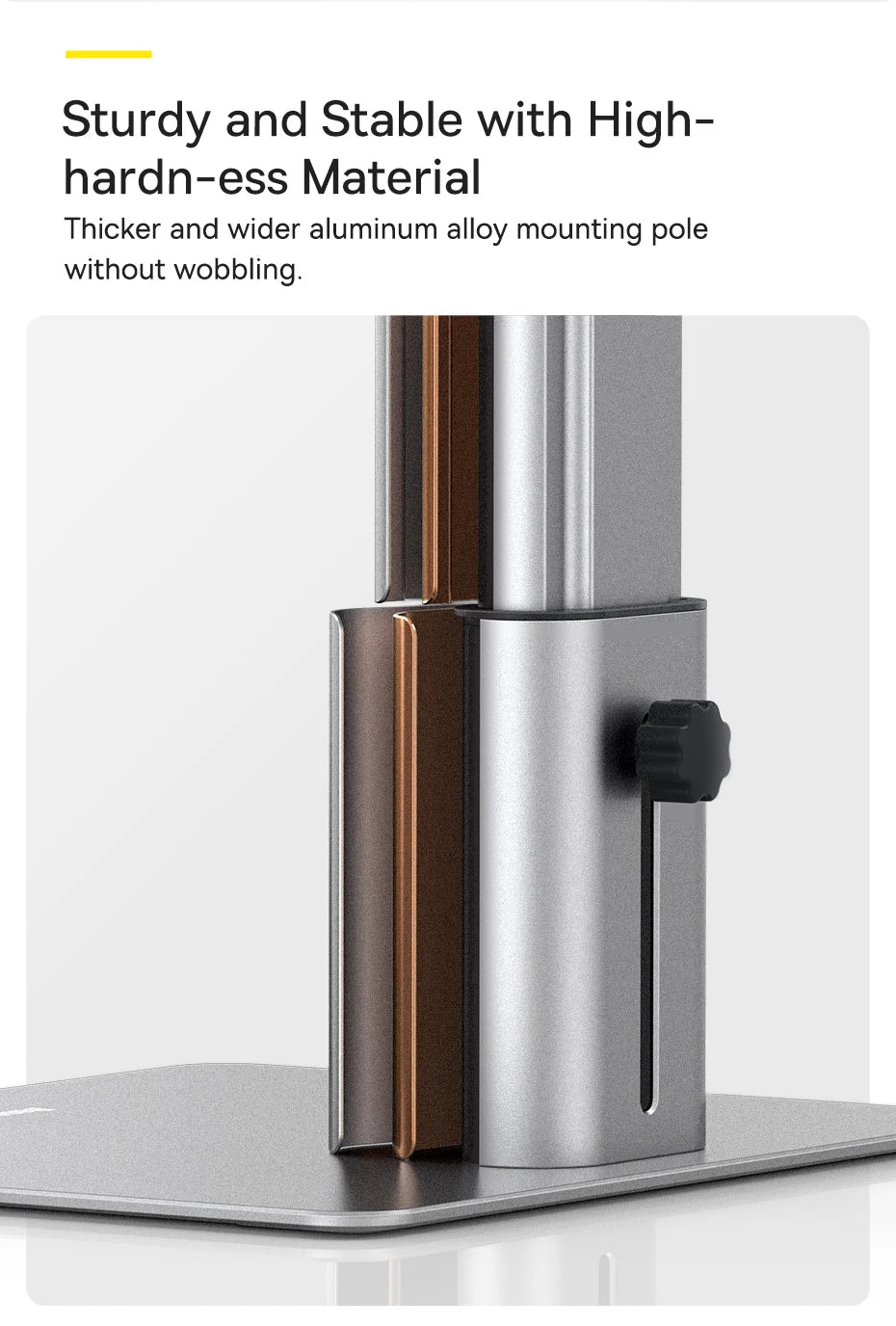 Minimalist aluminum design adds a professional touch to your workspace. Combines style and functionality in one elegant stand.